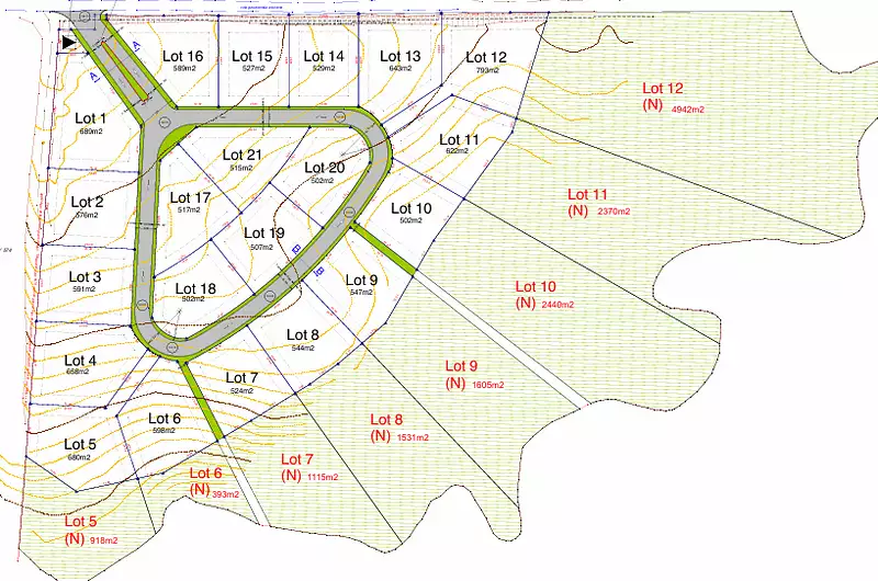 21 lots surfaces d’environ 500 à 800 m2 environnement calme et verdoyant