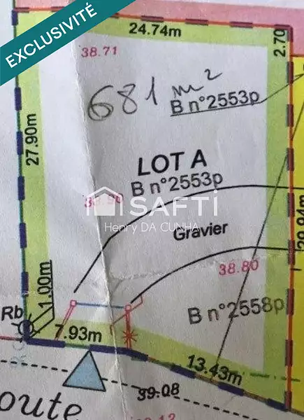 À vendre : terrain constructible de 681 m², situé en première ligne dans un environnement résidentiel, calme et arboré.