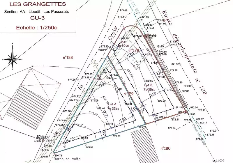 Parcelle de terrain - les grangettes aux grangettes, tout proche du lac st. point, parcelle de terrain de 727 m², constructible et viabilisée. (lot b) située en zone ub du règlement plu (disponible à l'agence). autre parcelle de 733 m² à 215 000 euros. (lot a). plusieurs projets possible (lot de 3 maisons ou collectif de 4 logements) sur la totalité des deux parcelles : 1460 m² (lot a et b) etude de sol disponible sur demande. les informations sur les risques auxquels ce bien est exposé sont disponibles sur le site géorisques : georisques.gouv.fr honoraires charge vendeur : -