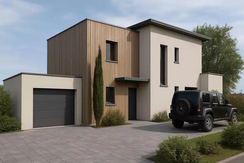 Exemple de maison 134 m² habitable + garage, 4 chambres et bureau, terrasse de 30 m². Coût de construction finie mais hors peinture, à partir de 280 000 euros pour cette construction ( chiffrage établi par un architecte DPLG)