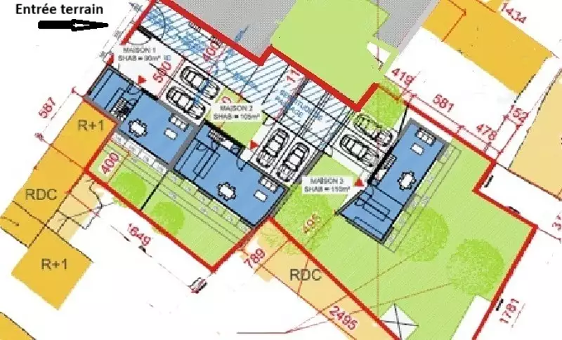 Un permis d'aménager pour 3 maisons individuelles avait été accordé en 2020, permettant de réaliser un projet résidentiel tout en conservant de beaux espaces verts et des emplacements de stationnement.