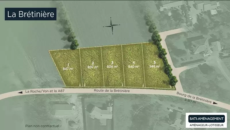 Venez découvrir au SUD-EST de la ROCHE-SUR-YON dans le hameau de la BRETINIERE, ce programme de 5 parcelles viabilisées: