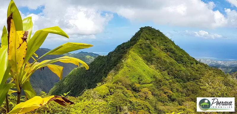Située sur les hauteur de Afaahiti, une grande parcelle de terre de 8 hectares en flanc de montagne avec une rivière.