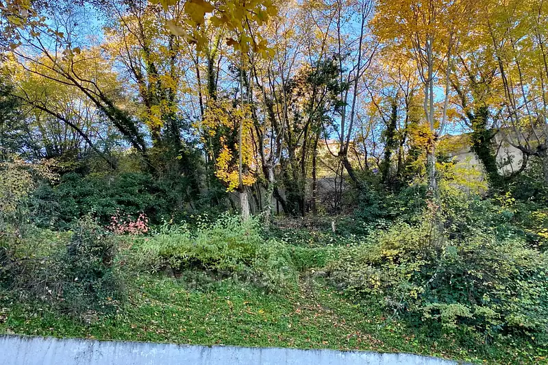 Parcelle de terrain à bâtir d'une superficie de 829 m² environ, boisé et pentu. Zone UDe au PLUm, emprise au sol de 50%
