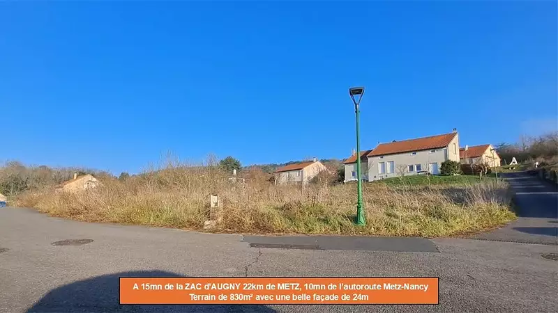 Proche de Corny, situé sur la commune d'ARRY magnifique terrain plat à bâtir de 830m²avec une belle façade de 24 mètres, terrain entièrement viabilisés, situé dans un quartier calme et agréable avec vue sur la vallée de la Moselle et une exposition Sud-Ouest, possibilité de faire une maison classique ou moderne de plain-pied ou à étage.