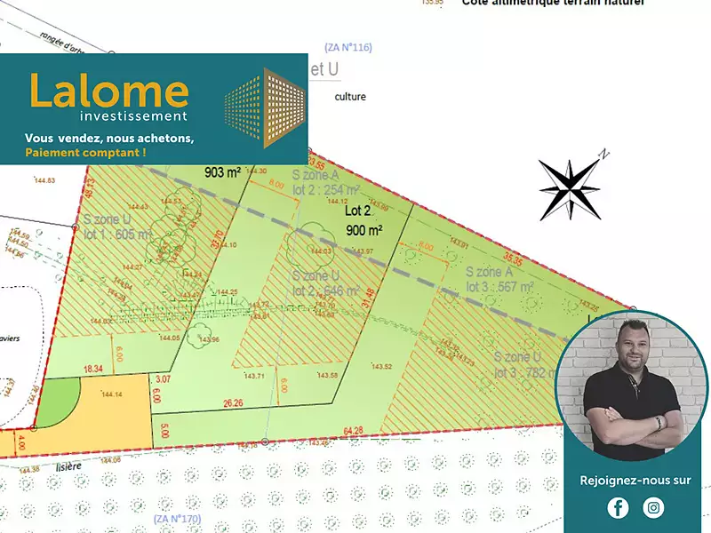 LALOME votre marchand de biens - Lotisseur LALOME INVESTISSEMENT vous présente à la vente entre Bréval et Chaufour/accès A13 sur la commune de La Cravent (78) dans un magnifique environnement entre les camps et la foret. Terrains à bâtir de 900 à 1349 m² idéalement situé dans une impasse au calme. Terrain individuel hors lotissement. Entièrement viabilisé en eau, électricité et tout à l'égout. Libre de constructeur. Borné avec plan de géomètre. PTZ ZONE B2. PLU zone U Retrait / voies : en retrait de 5.00 m minimum (voir également périmètre d'implantation de la construction sur plan PA 4) Retrait / limites : en limite ou retrait de 6.00 m minimum en présence d'ouvertures (voir également périmètre d'implantation de la construction sur plan PA 4) Emprise au sol maximale : 30 % Hauteur maximale des constructions : 7.00 m Toiture : à 2 pans avec pente entre 35° et 45° R + combles (7m au faitage). Grande façade idéal plain-pied. Etude de sol G1 faite. Gares de Bréval et de Bonnières à quelques minutes (45 min direction St Lazare) et Bus A14 Express la défense. Accès direct A13 - 15 min de Mantes. a partir de 95.900 euros Venez visiter votre futur terrain avec votre marchand de biens lotisseur Lalome Investissement ! REF : 130