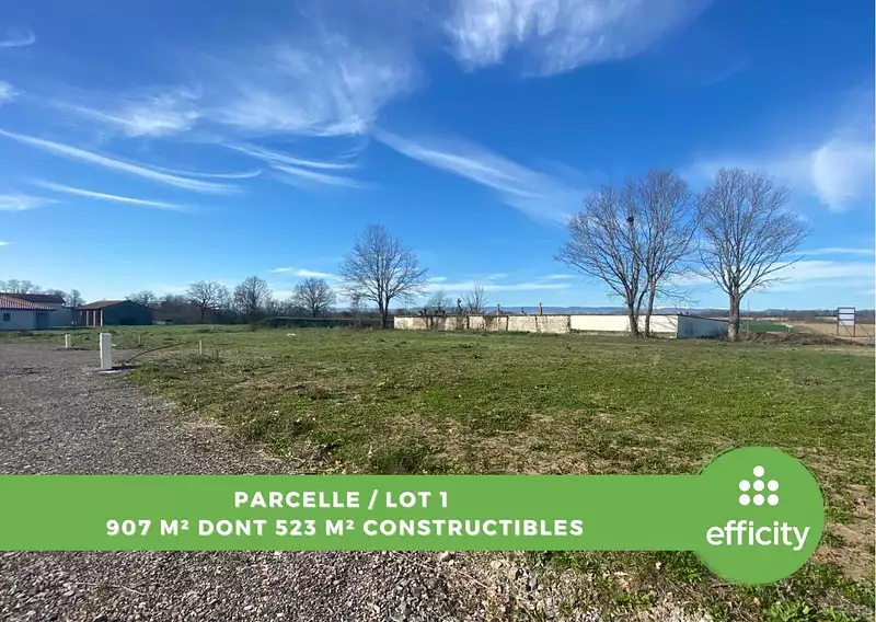 Efficity, l'Agence qui estime votre bien en ligne, et Caroline Latour vous proposent 1 parcelle de terrain de 907 m².
