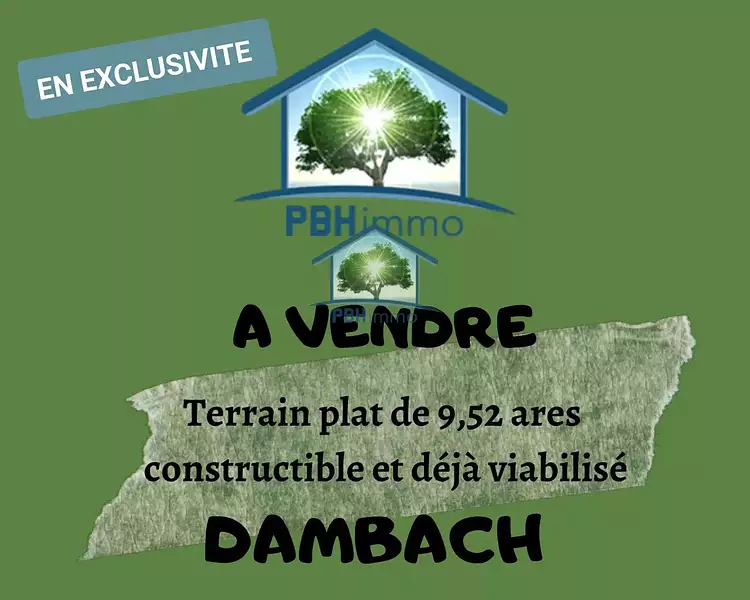 SUPER PRIX ! pour ce beau terrain plat constructible de 9,52ares, situé dans le joli village de DAMBACH (67110), dans un quartier très calme. Ce terrain est déjà viabilisé.