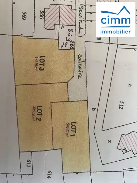 Terrain constructible non viabilisé d'une surface totale de 2515 m² pouvant être divisé en trois lots de 710 m², 750 m² et 680 m².