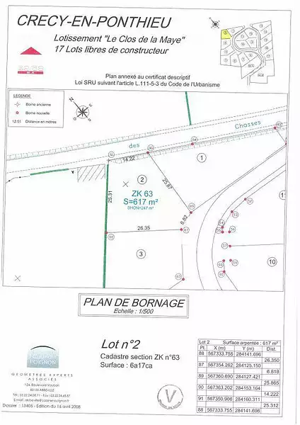 Parcelle libre de constructeur sur la commune de Crécy en Ponthieu située à 40 kms de Berck, 20 kms de Hesdin et d'Abbeville.