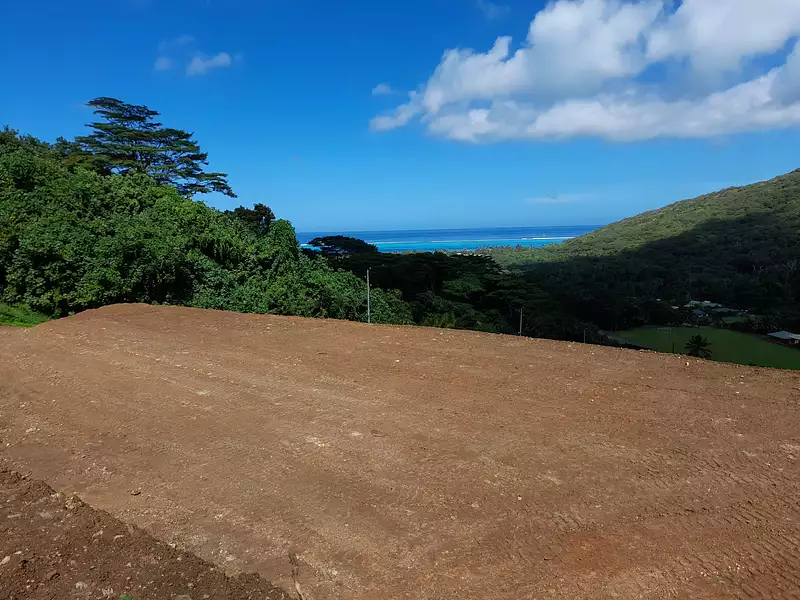 BAISSE DE PRIX ! NOUVEAUTE ! MOOREA : Joli terrain plat de 1260 M2 , belle vue dominante et dégagée mer. Terrain idéal pour projet Airbnb ou personnel.