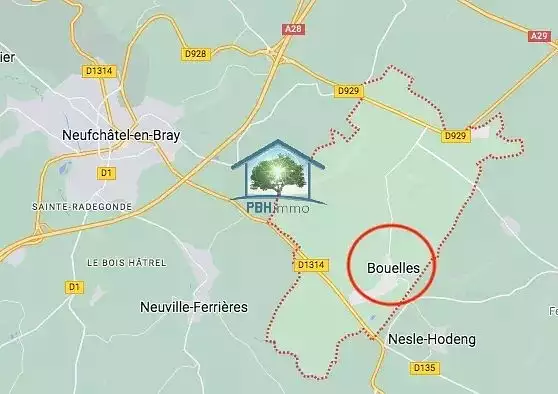 Beau terrain de 800 m2 sur la commune de Bouelles( 76270), constructible et libre de construction, avec viabilisation en bord de terrain.