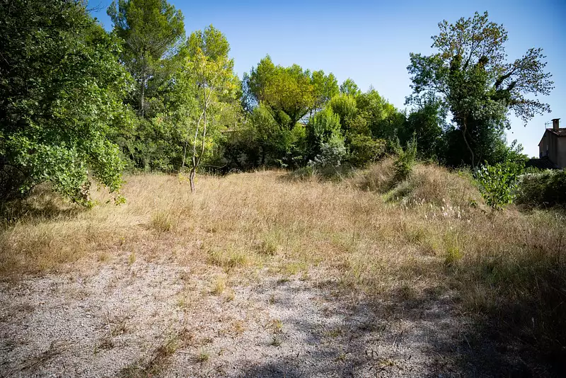 PRADES LE LEZ belle parcelle de terrain de 981 m2 constructible . proche à pieds du centre du village et des commodités , dans un environnement calme hors lotissement au fond d'une impasse .