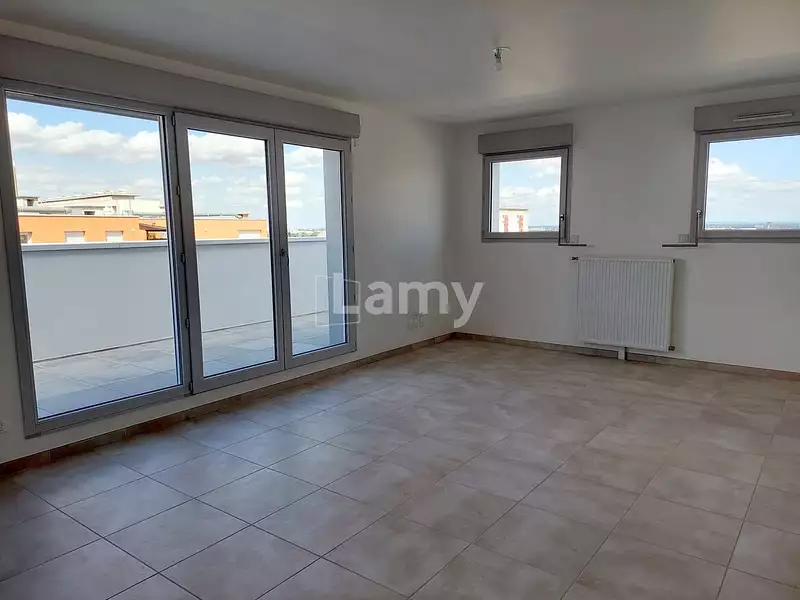 PAS DE FRAIS D'AGENCE.A CHENOVE, rue Alfred Changenet, nous vous proposons un appartement traversant, 5 pièces neuf de 102.27 m² exposé Nord Est et Ouest. Il se trouve au 5ème et dernier étage de la résidence Pulsar.Il comprend : un séjour de 44.75 m² avec espace cuisine et placard, un dégagement, quatre chambres dont trois de 9 m² avec placards et une de 11 m², une salle de bains et des toilettes séparées à proximité de la plus grande chambre, une salle de douche avec emplacement pour votre lave-linge et des toilettes séparées proches des trois autres chambres, une terrasse de 38.54 m² exposée Nord accessible depuis l'espace jour et une terrasse de 8.42 m² exposée Est accessible depuis la plus grande chambre.L'espace cuisine comprend un emplacement pour votre lave-vaisselle.La production de chauffage et d'eau chaude est collective. Les frais sont compris dans les charges et répartis selon des compteurs.Deux places de stationnement complètent cette location sans loyer supplémentaire.PULSAR fait rayonner les atouts d’une vie résidentielle prometteuse : il offre la sérénité d’un investissement immobilier dans le sillage d’un centre ancien réputé pour son patrimoine et sa qualité de vie, dans un secteur en plein renouveau et proche de toutes les commodités.Logement soumis à conditions.