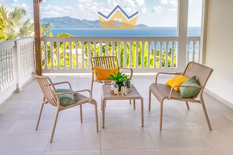 Offrez-vous un cadre de vie exceptionnel dans cet appartement de 104 m², entièrement rénové et meublé avec goût, situé dans une villa du lotissement La Caraïbe à Case Pilote.