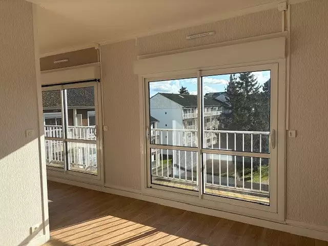 A louer à La Châtre, rue Bernard Naudin, un appartement faux type 5 de 104m² au 3ème étage avec balcons. Facilité de stationnement devant le bâtiment. Ce logement est équipé d'une entrée avec de nombreux placards, un double-séjour, une cuisine, 3 chambres, un cellier, une salle de bain avec baignoire et WC séparé. Chauffage collectif fuel et bois.