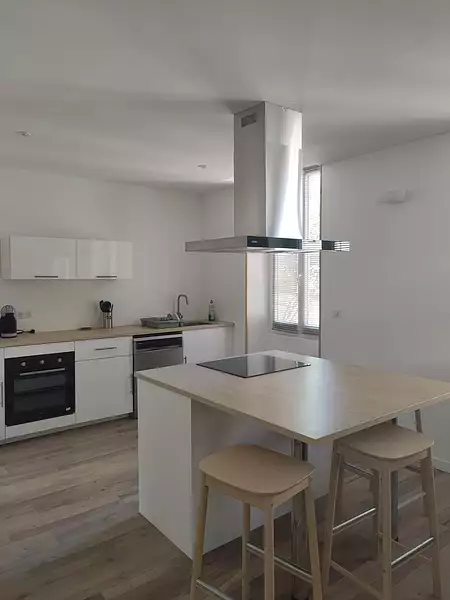 - Une grande pièce de vie de 50m2 avec cuisine, îlot central, espace salon