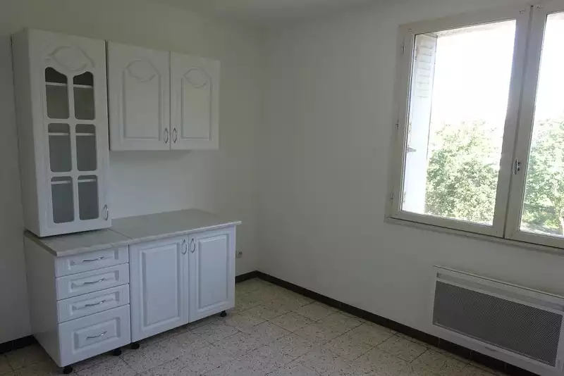 Saint Ambroix, grand appartement de type 4, au 1er étage, comprenant : hall d'entrée/dégagement, cuisine, séjour avec balcon, trois chambres, salle d'eau, buanderie, cave, parking, garage. Parking sécurisé portail automatique Résidence trés calme