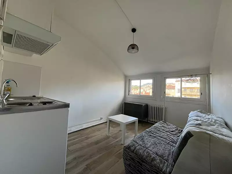 A deux pas du métro Périer, dans un immeuble sécurisé et bien entretenu, chambre de bonne meublée de 10,39 m² située au 8ème étage avec ascenseur.La pièce, lumineuse et calme, est équipée d'un lit, de rangements, ainsi que d'une kitchenette avec plaque de cuisson, réfrigérateur et évier.Les sanitaires (douche et WC) sont situés sur le palier, juste à côté de la chambre, et sont partagés avec un nombre très limité de voisins.Le bien est idéal pour un(e) étudiant(e) ou un(e) jeune actif(ve) à la recherche d'un pied-à-terre pratique et bien situé dans le 8e arrondissement de Marseille.Les informations sur les risques auxquels ce bien est exposé sont disponibles sur le site Géorisques : www. georisques. gouv. fr
