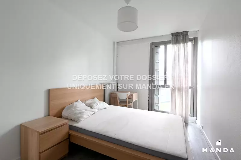 La chambre concernée par cette location se compose d'un lit double, d'un bureau et d'une armoire. Les parties communes se composent du reste de l'appartement, avec un grand salon lumineux.