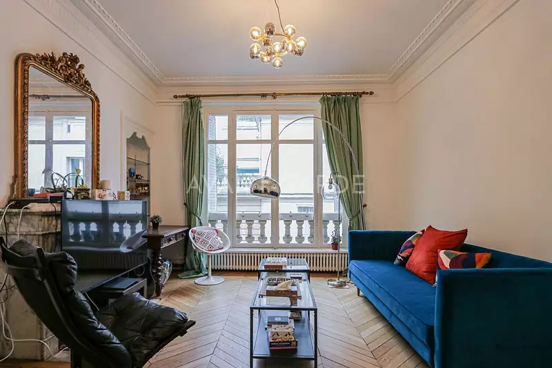 Avenue Bugeaud 75116 Paris - REFAIT A NEUF récemment - Appartement meublé de 113.22 m² au 1er étage sans ascenseur d'une copropriété de bon standing, composé d'une entrée avec rangements, un séjour, une salle à manger, une cuisine dinatoire séparée équipée et aménagée (réfrigérateur, congélateur, four, hotte, plaques inductions, lave-vaisselle, lave-linge séchant et vaisselle ...), deux grandes chambres dont une avec salle d'eau attenante, une chambre enfant, une seconde chambre enfant ou bureau, une salle de bain et deux wc séparés, une cave, gardien, digicode et interphone, appartement entièrement refait à neuf, belle hauteur sous-plafond (3.10m). les fenêtres du séjour donnent sur la voie privée rue Dosne. Chauffage et eau chaude individuels gaz. Métro ligne 2 Victor Hugo et RER C Avenue Foch.