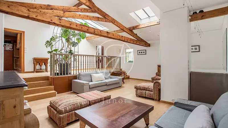 Situé au premier et dernier étage sans ascenseur d'un immeuble sécurisé, duplex d'exception traversant, aménagé en quatre pièces de 113,09m² loi Carrez et 157,59m² au sol.