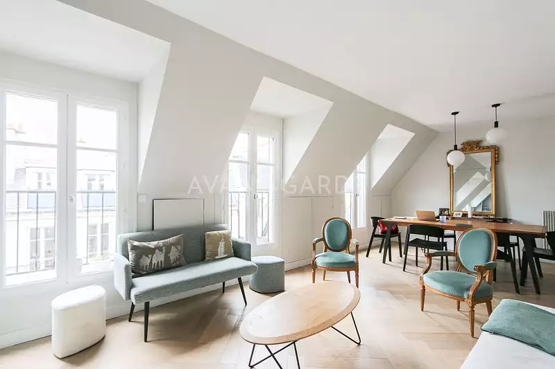 Rue Devès 92200 Neuilly-sur-Seine - Appartement meublé de 114.41 m² carrez et 131.76 m² au sol situé au 6ème et dernier étage avec ascenseur dans un immeuble de bon standing, ce bien est composé d'une entrée avec rangements, un séjour avec espace salon et table à manger, une cuisine séparée équipée et aménagée (réfrigérateur, congélateur, micro-onde, four, plaques, lave-vaisselle, vaisselles, lave linge, etc...), une chambre parentale avec rangements avec une seconde chambre en enfilade, une troisième et quatrième chambre avec rangements attenant à une salle de bain et un WC, un second WC séparé. Cave, digicode, interphone et gardien. Local poubelle et vélo. Chauffage individuel gaz et eau chaude mixte (individuelle gaz et individuelle électrique). Proximité métro ligne 1 (Les Sablons).