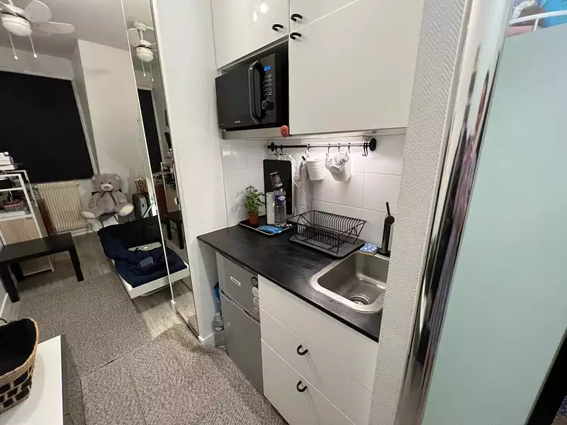 Appartement Studio – 12 m², lumineux et calme, en excellent état. Ce bien se compose d'une pièce principale aménagée avec télévision et banquette-lit, d'une kitchenette équipée, ainsi que d'une salle de bain. WC semi-privatif sur le palier. L'appartement dispose également d'un lave-linge, de parquet au sol et de rangements intégrés.