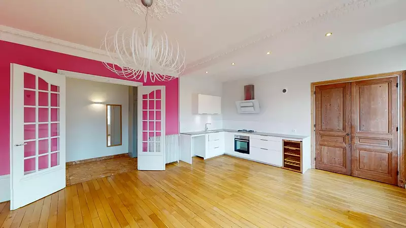 Saint Etienne - Entre la place BADOUILLERE et la place du PEUPLE, venez découvrir ce splendide appartement de 141.92 m² type bourgeois avec double séjour / salle à manger de 53.50 m² ouvert sur une cuisine aménagée et équipée (four, plaques, hotte, cave à vin). La suite de 20.25 m² avec sa salle d'eau attenante vous offre un confort tout particulier dans cet appartement de choix. Deux autres chambres de 10.18 et 12.72 m², ainsi que la deuxième salle d'eau sont également à votre disposition. Vous retrouverez également de nombreux rangements et de beaux volumes dans ce bel appartement lumineux.