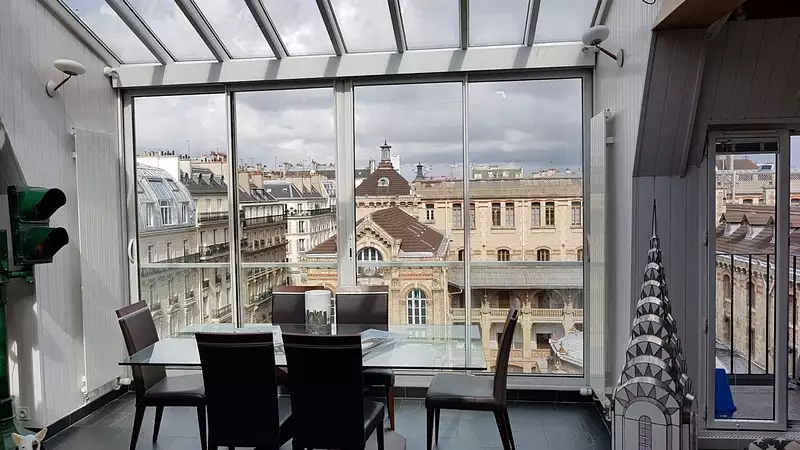 Dans un immeuble haussmannien sécurisé, de grand standing , au 5eme et 6eme étages avec ascenseur, un très beau duplex de 5 pièces d'une surface de 142 m² loi carrez et 148 m2 au sol , plus une magnifique terrasse de 18m2 avec une vue exceptionnelle sur les toits de Paris.