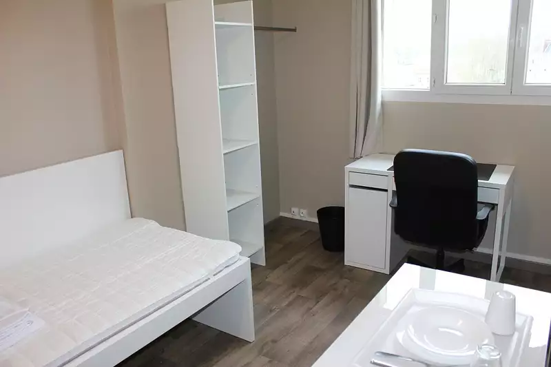 Chaque chambre est entièrement meublée, avec lit, bureau, armoire, commodes. Toutes les chambres disposent de leur salle de bain et toilettes privées. Nous vous fournissons également le linge de lit (housse de couette, drap, linge de lit, alèse) ainsi qu¿un kit vaisselle. Une femme de ménage passe toutes les semaines dans les parties communes et tous les 15 jours dans les chambres, lors de son passage elle vous remets du linge de lit propre.