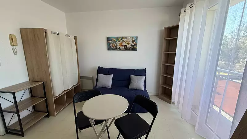 GUERET, agréable F1 meublé très lumineux, en excellent état. Situé au 1er et dernier étage d'un petit immeuble. Grande baie vitrée avec volets roulants électriques solaires. Balcon avec vue dégagée, interphone et parking privé. Libre de suite.