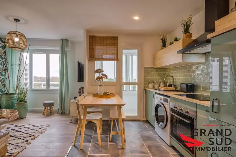 | Cuisine ouverte, équipée | Séjour de 19 m² |