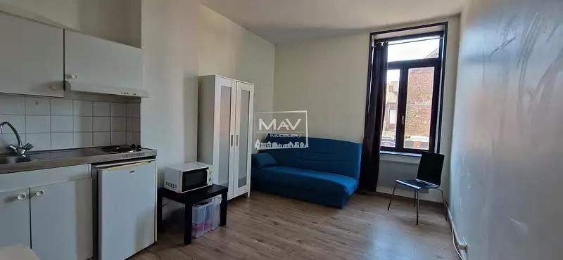 A LOUER - TOURCOING - T1 MEUBLÉ proche du lycée/ CFA Le Corbusier, de l'école des douanes, de Tourcoing Centre, de toutes commodités (Métro, station V'Lille, Centre Commercial St Christophe). Appartement MEUBLÉ de 14,70m² habitable situé au 1er étage d'un petit immeuble calme composé Séjour, cuisine équipée meublée (plaques électriques, réfrigérateur, micro-onde), salle de bain avec douche, lavabo, wc. Idéal pour étudiant ou jeune salarié. Menuiserie en double vitrage bois et chauffage individuel électrique. Loyer: 400€ dont Charges: 50€ (eau froide, entretiens communs) Dépôt de garantie: 700€ Honoraire de location : 191,10€ dont 44,10€ d'état des lieux