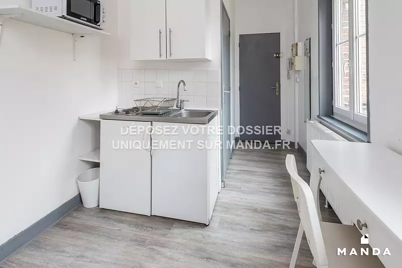 A 5 minutes de la gare d'Amiens, Manda propose un T1 en location rue Vatable. Situé au 1er étage sans ascenseur, ce studio refait à neuf est loué meublé.
