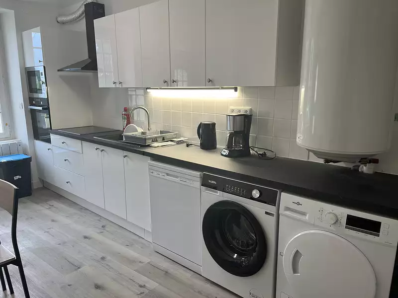 Chambre en colocation dans une maison de 93m2 !!!! Je vous propose 4 chambres de 15m2 chacune en colocation à Cergy village dans une maison pleine de charme totalement rénovée. Chacune des chambres dispose d'une salle d'eau avec wc, un placard avec penderie, un bureau et un support mural pour TV. Côté équipements, vous disposerez d'un lit en 140 x 200, d'un placard de rangement, d'un bureau. Pour les parties communes, seront à votre disposition, un séjour avec télévision, une cuisine équipée avec réfrigérateur, congélateur, four, four micro-ondes, plaque induction, lave linge un sèche linge, une cafetière et une bouilloire. Vaisselle et les différents ustensiles de cuisine vous permettront de préparer vos repas.En complément, un local à trottinettes sera à votre disposition dans la cour. Arrêt de bus à 20m, grandes écoles sur Cergy à 5min, gare RER à 10min, étangs de Cergy à 5min.Fibre installée.