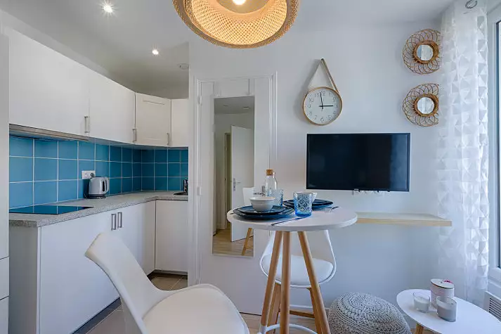 Une cuisine entièrement équipée avec électroménager moderne, prête à accueillir vos talents culinaires.
