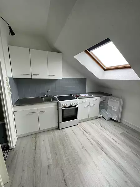 Appartement en duplex au dernier étage comprenant une entrée, une salle de bains avec wc séparé, un séjour avec cuisine aménagée et équipée (cuisinière, frigo top), une chambre à l'étage. Chauffage électrique individuel et vélux double vitrage Les informations sur les risques auxquels ce bien est exposé sont disponibles sur le site Géorisques : www.georisques.gouv.fr Loyer : 375 €Charges : 25 €Dépôt de garantie : 375 €Honoraires : 173.91 € TTC dont 47.43 € TTC d'état des lieux