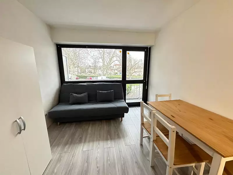 A louer à Talence, proche des commodités, arrêt de tram ligne B "Peixotto" à 10 minutes à pied, studio rénové et meublé avec goût dans une résidence calme et sécurisée, comprenant une entrée, une pièce à vivre donnant sur un agréable balcon au calme et une salle d'eau avec WC.