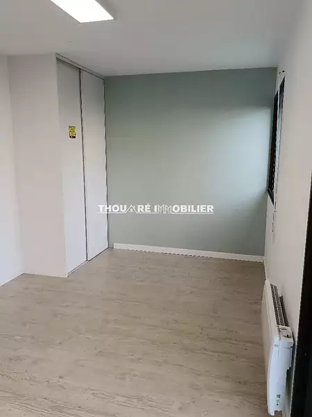 Au coeur du bourg de Thouaré, un bureau à usage professionnel dans un état impeccable, au RDC, salle d'attente commune avec un autre bureau et WC, double vitrage, stationnement facile, disponible de suite