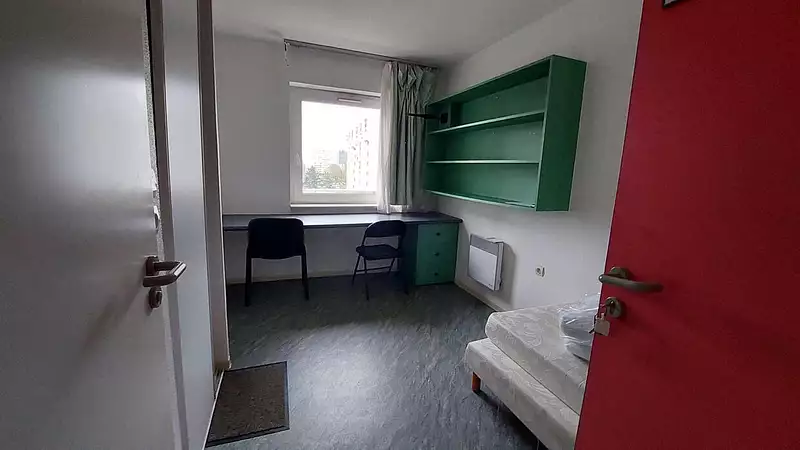 Dans résidence avec service (laverie, salle de sport, salle de travail, accueil), à proximité des commerces, facultés et écoles et transports en commun, studiome meublé composé d'une partie privative avec salle d'eau, espace bureau, étagère, lit une personne et d'une kitchenette séparée à partager avec un autre studio.La cuisine dispose de deux réfrigérateurs, de vaisselle et d'un four micro-ondes.Le chauffage est individuel électrique.La résidence est équipée de la fibre.