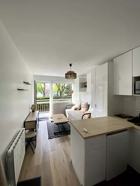 Louis Maurel Immobilier vous présente en exclusivité ce magnifique appartement entièrement rénové, idéalement situé au coeur du quartier prisé de la Mairie de Vélizy-Villacoublay, au sein d'une résidence familiale, calme et sécurisée. Sa situation est idéale : à deux pas des commerces, de la forêt de Meudon pour vos promenades, et à moins de 5 minutes à pied des arrêts de bus et du tramway T6, permettant de rejoindre aisément Paris ou le centre commercial Westfield Vélizy 2. L'appartement se compose de : Une cuisine ouverte entièrement aménagée et équipée d'électroménager haut de gamme (plaque à induction, four mixte, lave-linge séchant). Un séjour lumineux, exposé Ouest, ouvrant sur un balcon au calme avec vue dégagée sur un square arboré. L'espace de vie est meublé avec goût : canapé-lit double grand confort, télévision et table basse. Une salle d'eau moderne avec douche à l'italienne et WC séparés. Les prestations de qualité, le mobilier contemporain, les nombreux rangements, ainsi que le balcon sans vis-à-vis offrent un confort de vie optimal dans un environnement verdoyant et apaisant. Un bien rare sur le secteur, prêt à accueillir ses nouveaux occupants. Contactez dès aujourd'hui Louis Maurel Immobilier pour organiser une visite et découvrir tout le charme de ce bien d'exception à Vélizy-Villacoublay. Copropriété de 304 lots - dont 110 lots habitation. (Pas de procédure en cours). Charges annuelles : 600 euros.