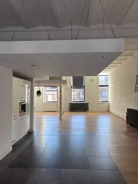 Ce bien est composé d'un grand espace de vie traversant de près de 100m2 avec une hauteur sous plafond de 3,75m, bénéficiant d'une grande luminosité naturelle et différents espaces pour une cuisine dinatoire, un espace salon, une salle à manger et d'autres possibilités.