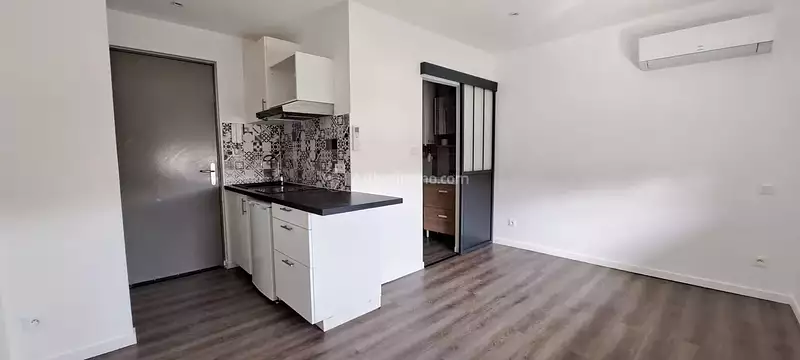 une pièce de vie avec une cuisine aménagée et équipée (hotte aspirante, plaque de cuisson, réfrigérateur), une salle d'eau avec un WC. Coup de cœur assuré!