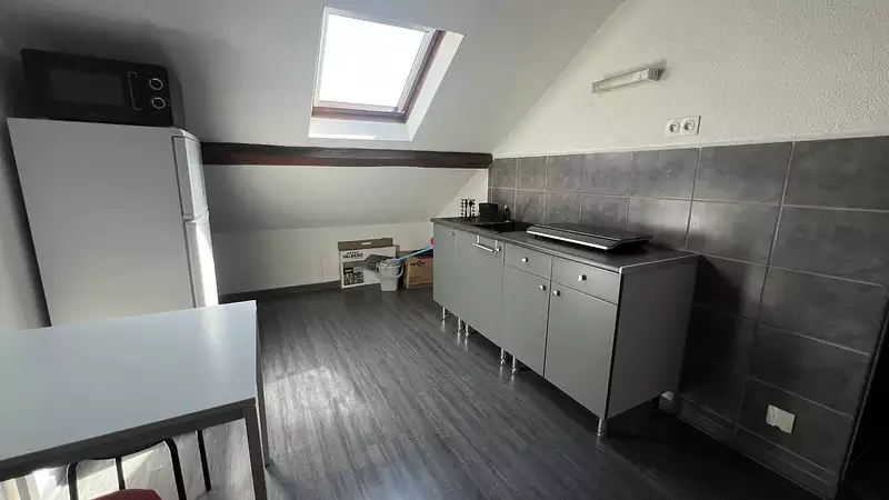Studio meublé situé au 2ème étage comprenant une pièce de vie avec cuisine aménagée, équipée et parquetée ainsi qu'une salle d'eau parquetée avec sèche serviette et WC