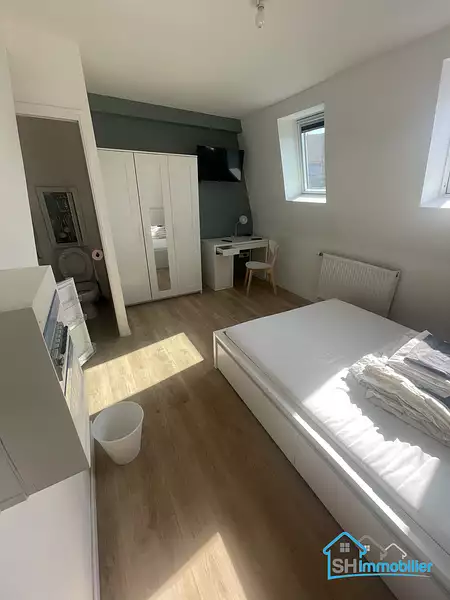 Ideal étudiant ou jeune actif, chambre entièrement meublé en collocation avec salle de bain et WC individuelles, cuisine équipée commune, buanderie, cour.