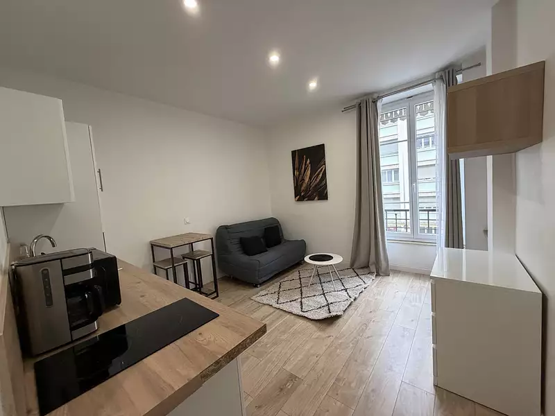 Appartement entièrement rénové avec cuisine meublée et équipée ( plaques, évier, machine à laver, réfrigérateur)