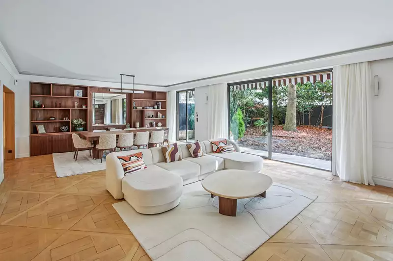 Il comprend une belle entrée qui mène à un double séjour lumineux ouvrant sur un jardin privatif de 200 m2. Vous y trouverez également une grande bibliothèque, un espace bureau, un coin repas et une cuisine dinatoire entièrement équipée ouvrant sur une jolie terrasse de 35 m2.