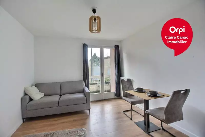 A louer, studio meublé rénové en 2021/2022 avec goût dans une résidence fermée. Ce logement comprend un coin kitchenette, une pièce de vie et une salle d'eau . La pièce de vie donne sur le balcon .