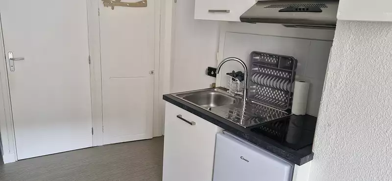 Au 1er étage d’un petit immeuble calme de trois logements, ce studio de 18 m2 récemment rénové se compose d’une pièce principale avec kitchenette équipée, d’une salle d’eau avec douche et vasque, ainsi que de WC séparés. Le logement bénéficie du double vitrage PVC, d’un ballon d’eau chaude individuel et d’un chauffage électrique. Loué meublé, il est prêt à accueillir son futur locataire.